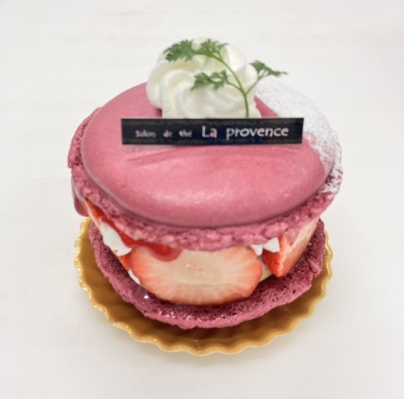 マカロンルージュに今が旬の苺とフランボワーズ、その中にエレガントなローズの香りがふわっと香る滑らかなクレームパティシエール。甘酸っぱいフランボワーズのソースと華やかな香りがふわっと口いっぱいに広がります!