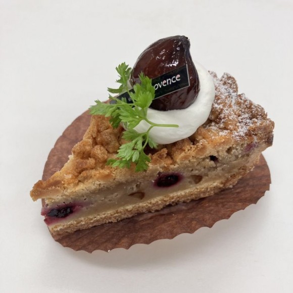 サクッとしたシナモン香るシュクレとシュトロイゼル、しっとりとした口当たりの栗のクリームの中にはカシスのじゅわっとした酸味がアクセントになった秋限定の大人なタルトになっています!